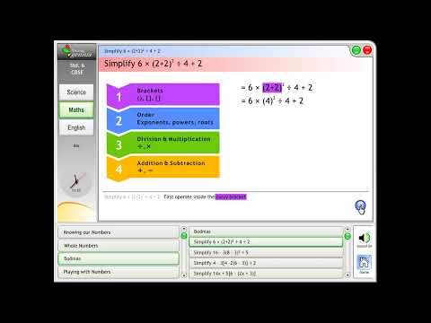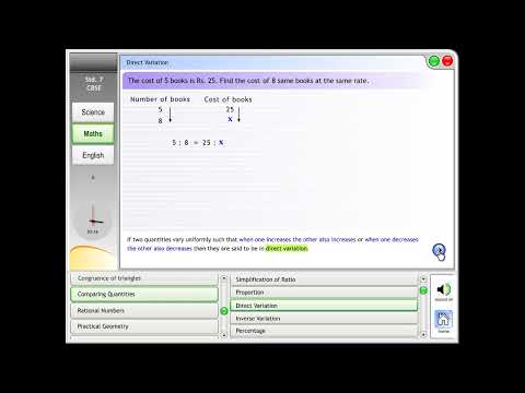 - Mathematics: Integers, fractions, decimals, data handling, simple equations, lines and angles, triangles and properties, comparing quantities, rational numbers, perimeter and area, algebraic expressions, exponents and powers, symmetry, visualising solid shapes.